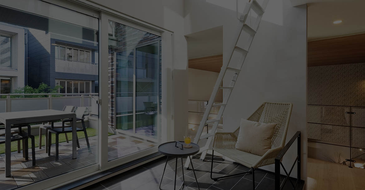 就寝前に夫婦で音楽を聴きながらラウンジチェアにもたれワインを嗜む。