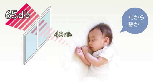 約25dbの音をカットし、住宅の中で音洩れしやすい窓を強化、安らぎの場である室内空間を守ります。
