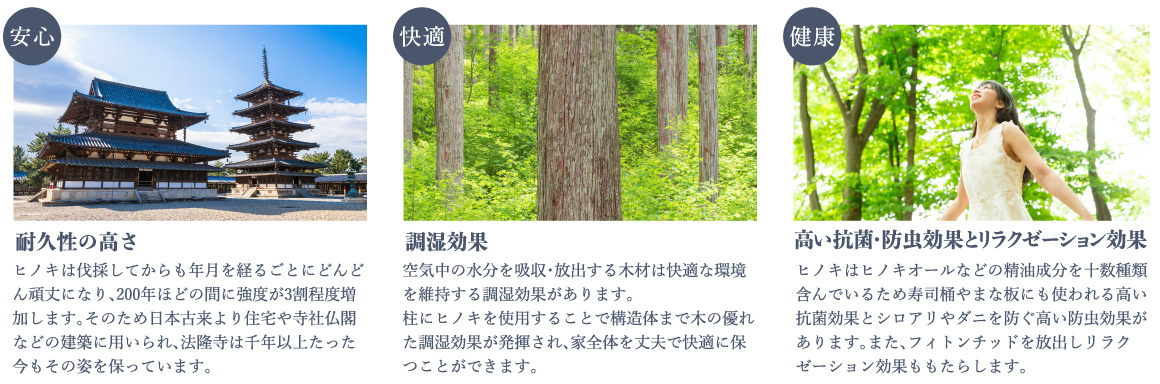 無垢材は育った環境などによって強度にバラツキがありますが、集成材は「強度性能」による評価のため全ての住宅に均一な品質を実現。