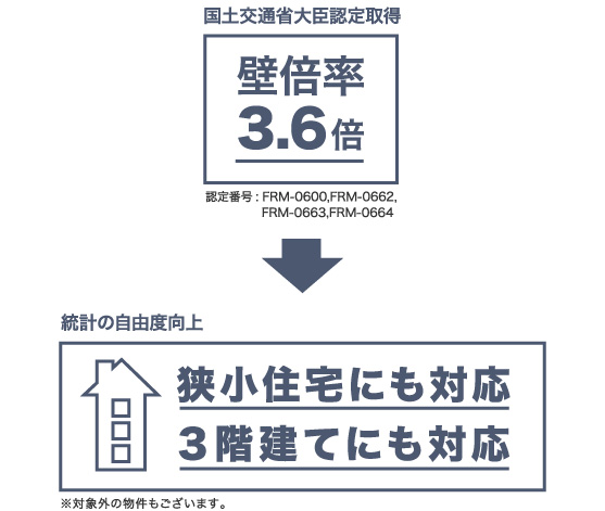 その中でもゴム系ダンパーでは最高の壁倍率3.6を取得。