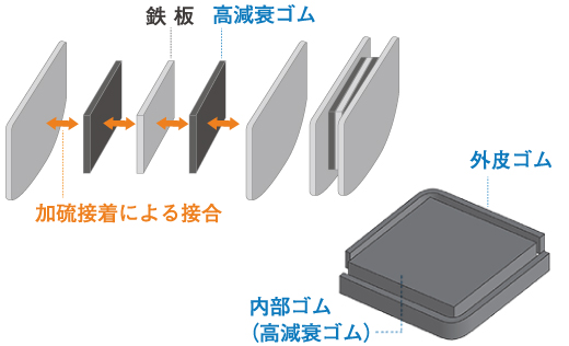 加硫接着(※1)という独自の技術で、ゴムと鉄板を強固に接着させました。