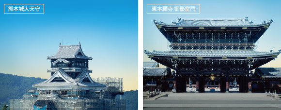 高減衰ゴムダンパーは、地震で被災した熊本城の大天守の復旧作業工事や、京都・東本願寺の御影堂、御影堂門、大谷祖廟などにも採用されています。