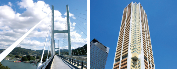 住友ゴムの独自の技術から誕生した「高減衰ゴム」は、高層ビルや橋などの制震ダンパーに使われています。