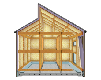 断熱材で構造をすっぽり包み込む外断熱工法。国の推奨するZEH+はもちろん、最高レベルの断熱等級「7」のUA値0.26以下もクリアする断熱性能です。
