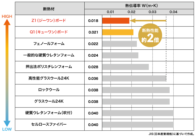熱伝導率業界No.1の断熱材でトップクラスの断熱性能
