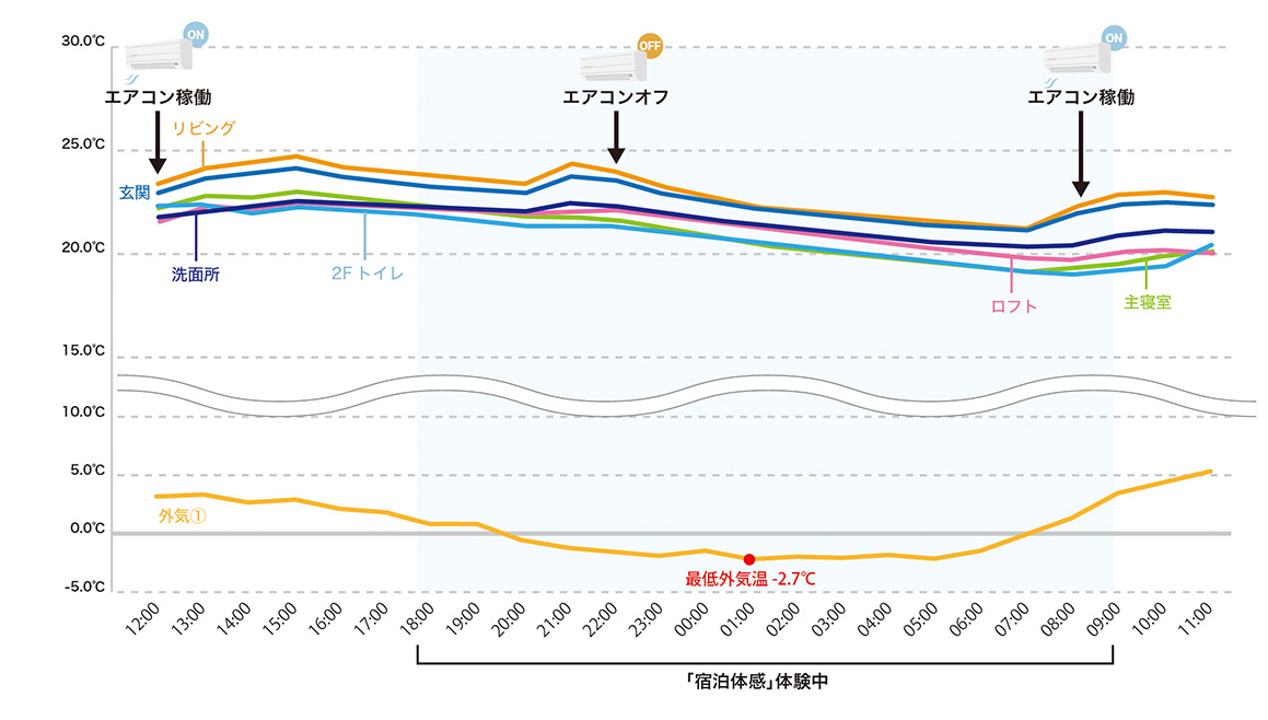 弊社では『宿泊体感モデル』で実際に宿泊されたお客様の感想(体感)と、記録データを基に季節ごとのオリジナルデータを収集。今後の改善に役立てています。