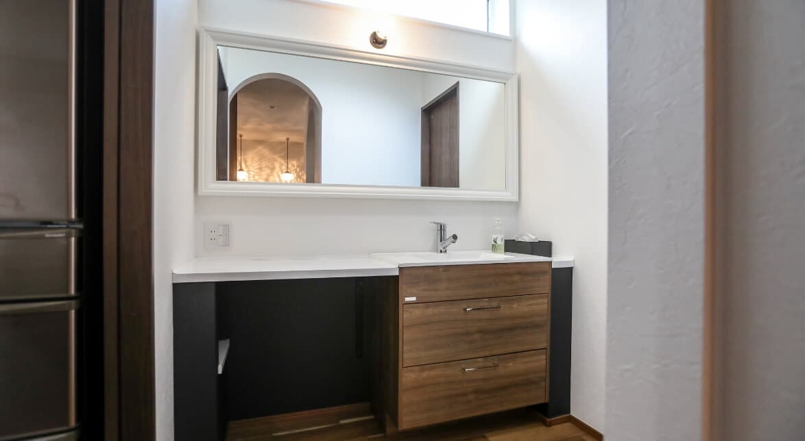 妻:広い洗面台がほしいけれど造作は高額すぎるので、なんとか工夫して納得のいく答えを出したかったんです。そこで、10パターンのイメージ図を描いてお見積りをいただきました。普通この数は断られると思うんですが、夫に「ムリだよ、諦めなよ」と言われながらも一緒に悩み抜いてくれたんですよ。ここまでやってくださる方だったから、納得して前に進めたんだと思います。