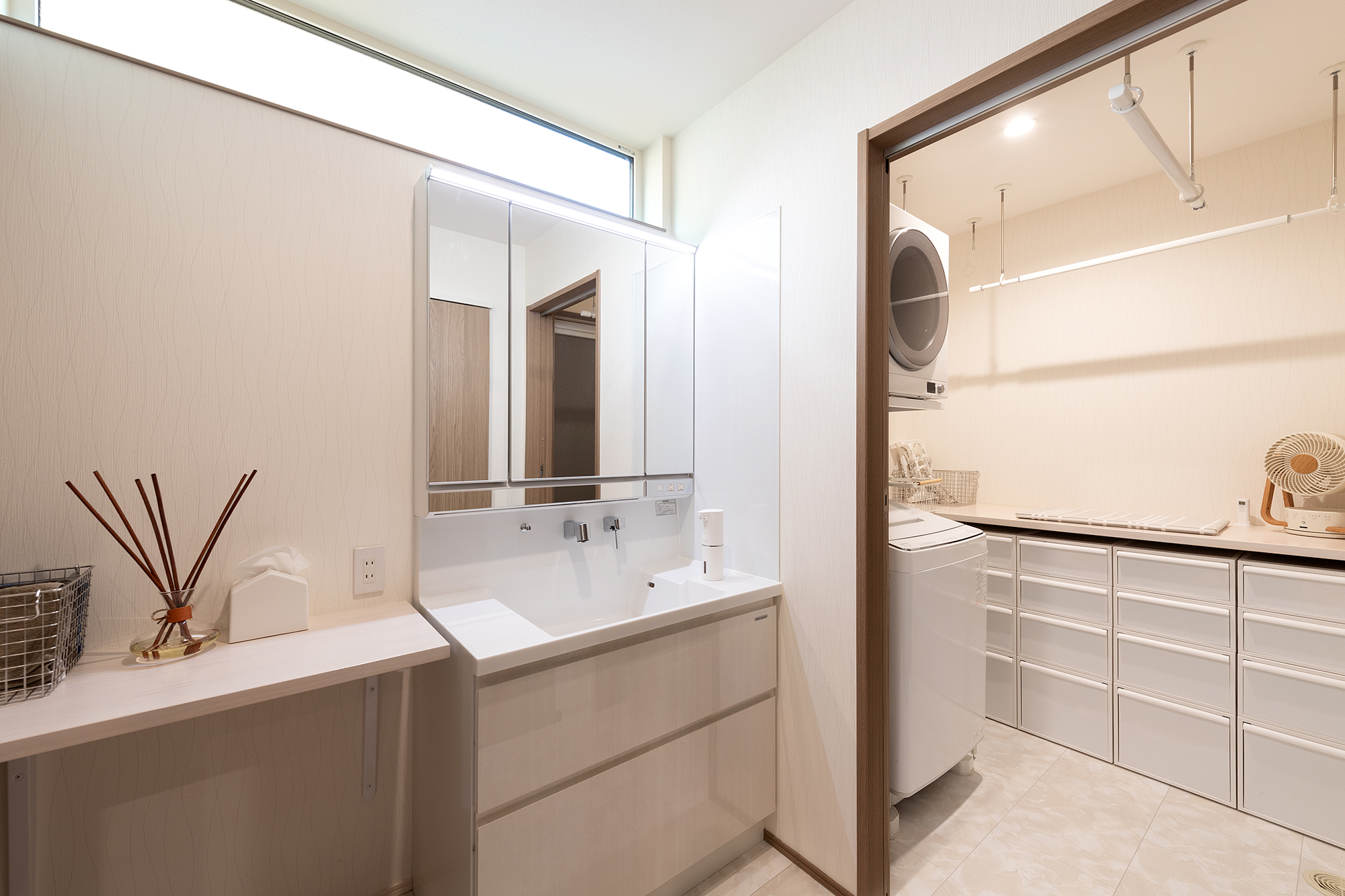 洗面室と浴室の間にランドリールームを設けました。