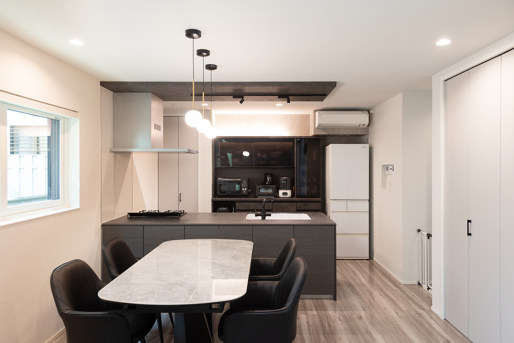 開放的な対面カウンター式のキッチンで、料理しながらでもご家族との会話も弾みます。