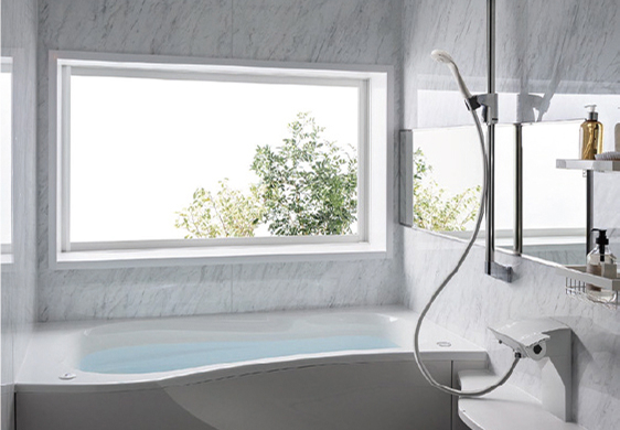 2つの入浴スタイルから選択できる。節約&エコ設計で毎日のお掃除の手間を減らせるアイテムを搭載。入浴スタイルからバスタブの形状を選べ、ワイドミラーも標準仕様。また浴室パネルのカラーバリエーションも豊富。さらに保温性、耐震性にも優れています。