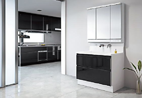 多彩なカラーから選べる扉や豊富な収納、お手入れが楽でキレイが続くボウルカウンターなど家族が毎日使う場所だから、便利で明るく清潔に保てる工夫をした洗面化粧台。