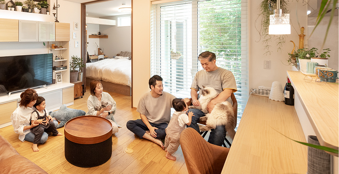 3階建てや中庭など外部からの影響を受けやすい間取りでもしっかり断熱。お客様の様々なご希望にお答えするダブル断熱住宅です。