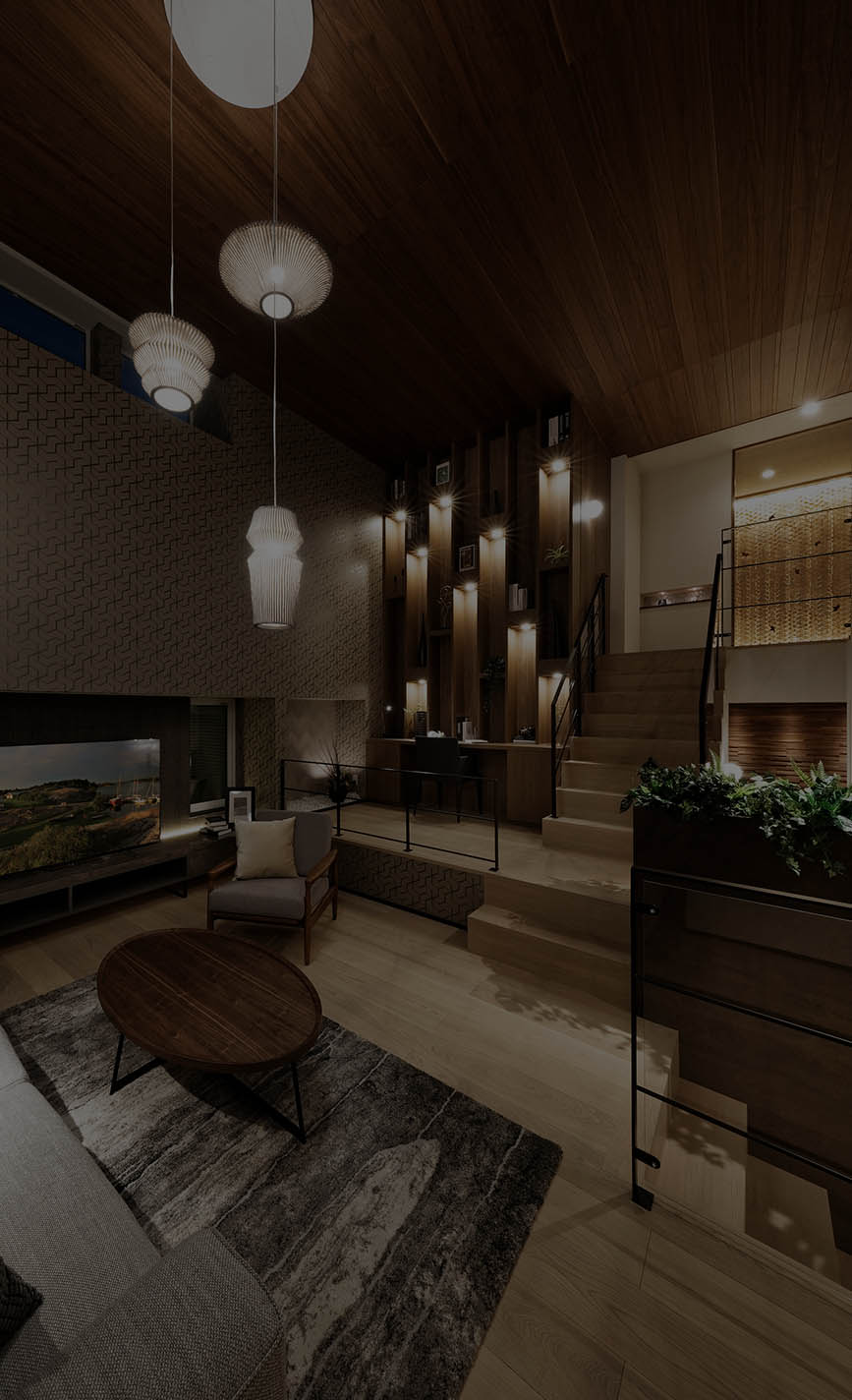日本の伝統なぐり加工を施した木天井と間接照明は穏やかな時間を提供。