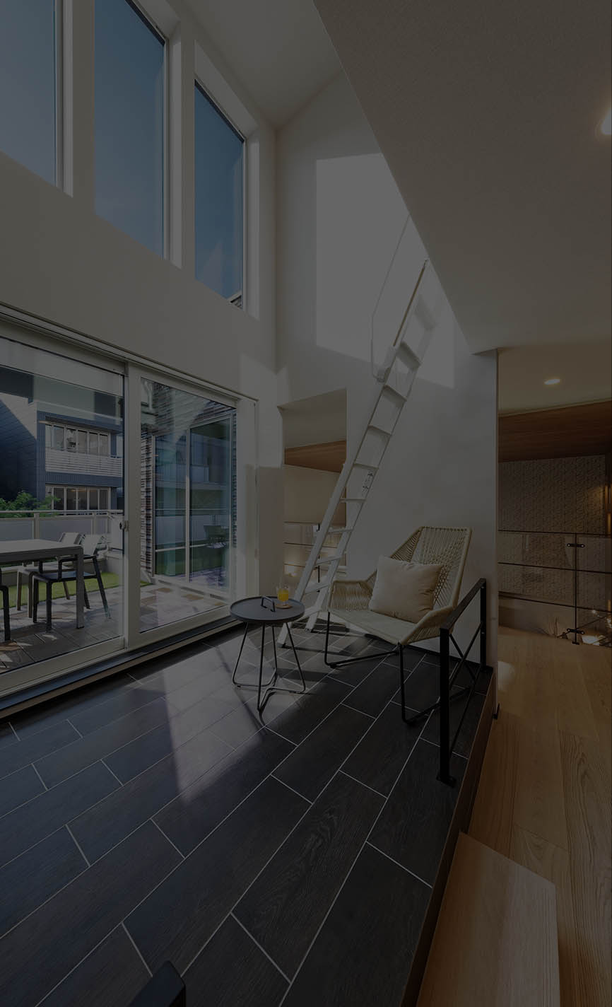 リビングはローシッティングのゆったりとしたソファーで家族の憩いの場。