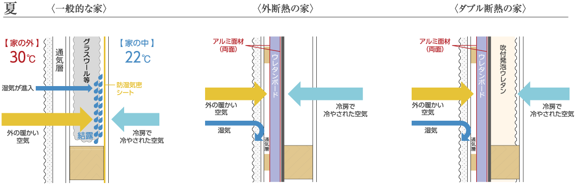 原因になるカビやダニの発生を防ぎます。家族の健康を守り、構造体である柱や土台を守り、住まいの耐久性を高めます。