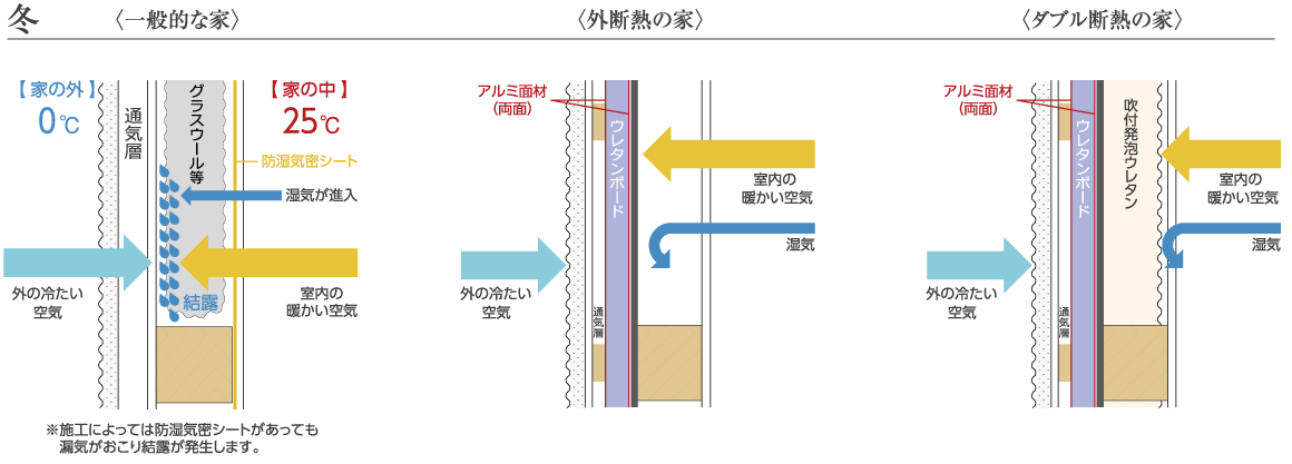 外断熱工法「Kurumu」は、外気温と内気温がぶつかるのを防ぎ結露を抑えることで、アレルギーやぜんそくなどの