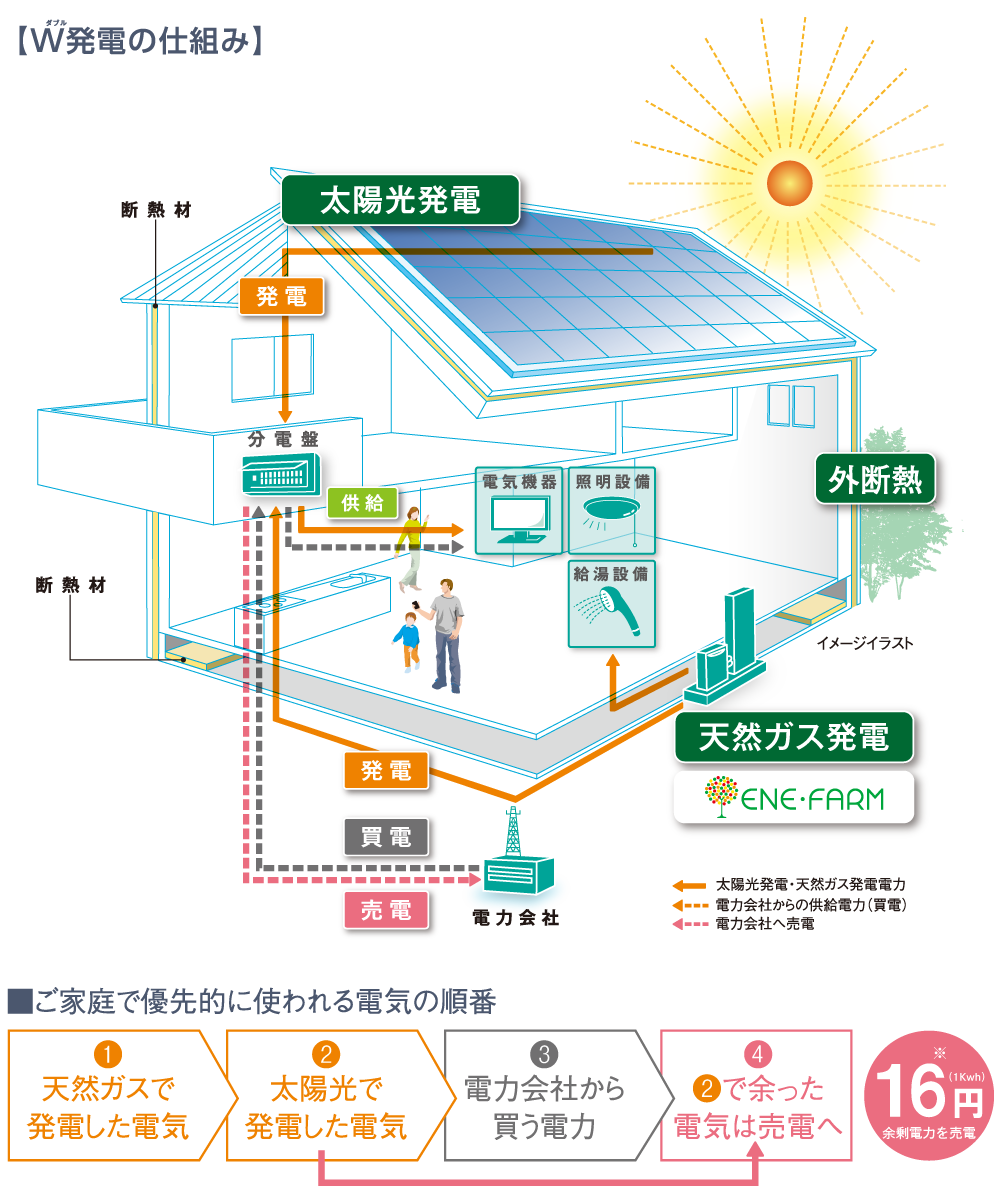 ダブル発電は、環境にやさしく、家計にもやさしい、一歩先行くこれからの住まいのエネルギーシステムです。