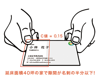 小林住宅は全棟気密測定を実施します。外断熱工法は家自体の隙間を少なくし、自社施工で丁寧に施工することでハウスメーカーの中でNo.1の気密性能を誇ります。