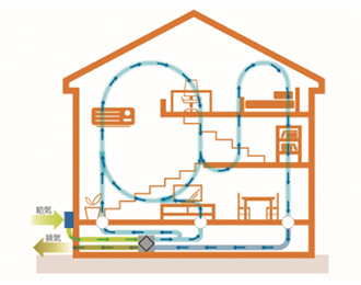 屋外設置の高性能フィルターで屋内への不純物の侵入を98%以上除去します。換気だけでなく、空気の質にもこだわります。