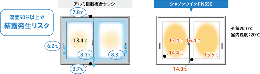 冬の冷たい外気を室内に伝えにくく、室内側の窓の温度が低くなりにくいので、結露の発生を抑えられます。