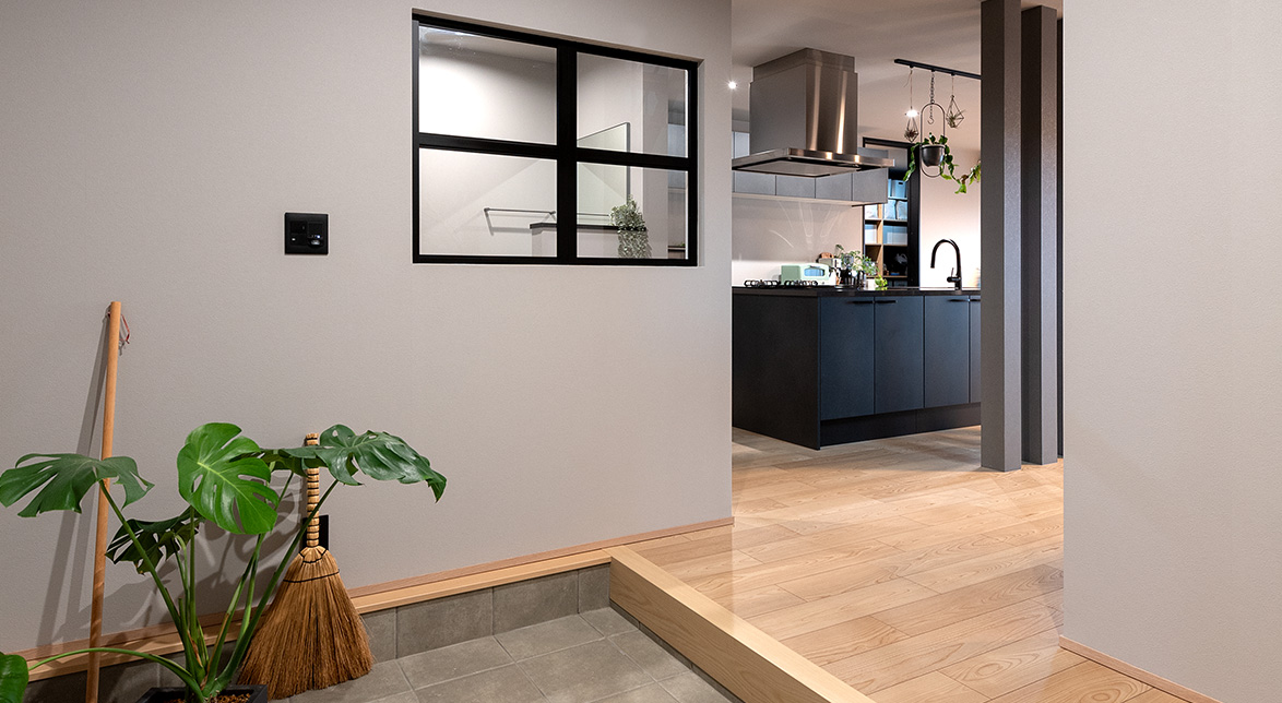 マンション並みの性能を求め、宿泊体感に参加。エアコン1台で冬も暖かく快適だったこと、デザイン対応の親身さで小林住宅に決定。玄関を広く、プライベートと生活空間を分けた間取りを実現。高性能な採光と換気システムのおかげで、子どもの風邪も減り、快適で健康的な暮らしを実感されています。