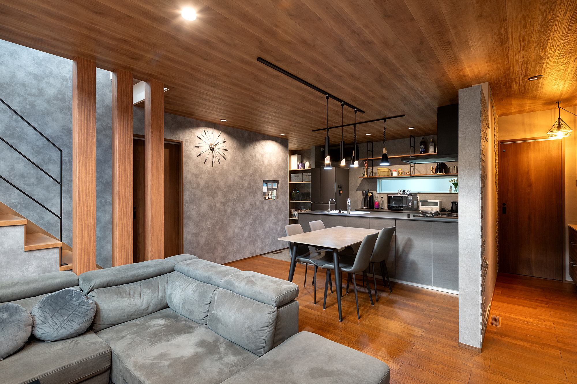 グレーのアクセントクロスでシックな印象に。
