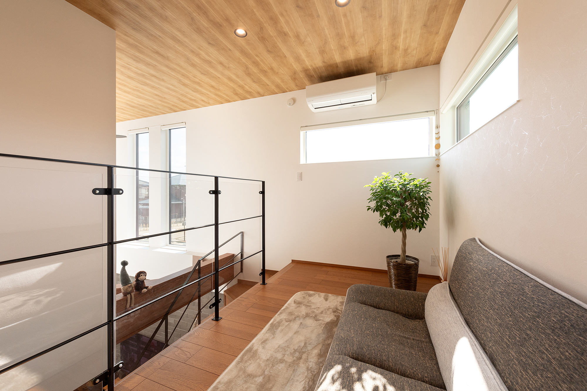 吹抜けに面したフリースペース。ソファを置いてセカンドリビングとして使用できるのも